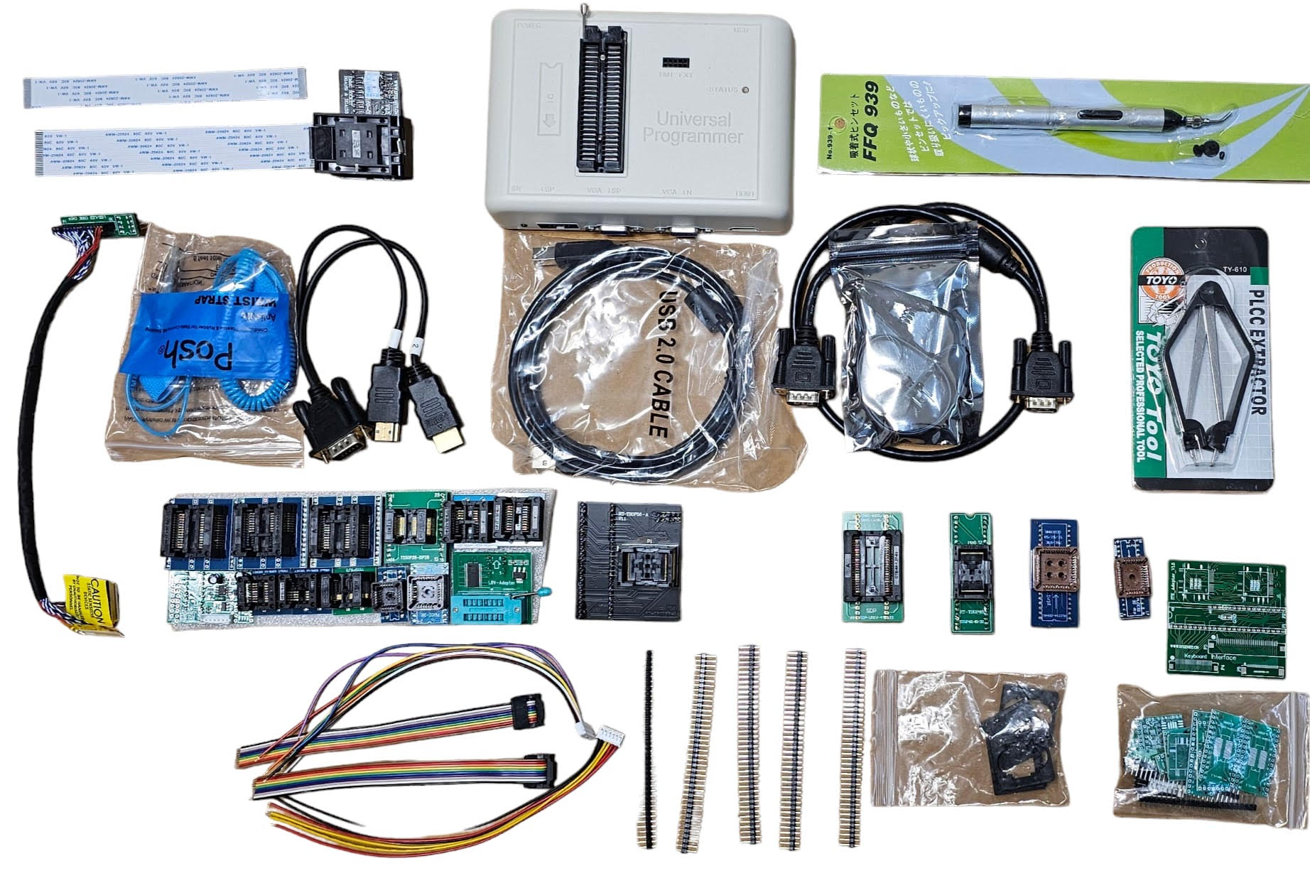 RT-809H Universal Programlayıcı, yüksek programlama hızı ve çeşitli yazılım işlevleri ile öne çıkar. Her türlü flaşı destekler ve adaptör gerektirmez. Ayrıca, ISP konektörü ile devre içi programlama yapabilirsiniz. VGA ve HDMI bağlantı noktaları sayesinde LCD TV ve monitörleri sökmeden okuma ve yazma imkanı sunar. USB 2.0 arayüzü ile PC'ye bağlanabilir ve Windows işletim sistemleri ile uyumludur. Aşırı akım koruması ve imza bayt kontrolü gibi güvenlik önlemleri ile donatılmıştır. Otomatik seçim desteği ile TSOP48, NAND, eMMC, PLCC ve diğer flaş serileri için uygundur. Tek evrensel programcı olarak LCD TV, DVD, DVB ve diğer cihazlar için ideal bir seçimdir.